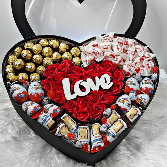 Red Heart-Shaped Box with Soap Roses and Sweets 47 cm