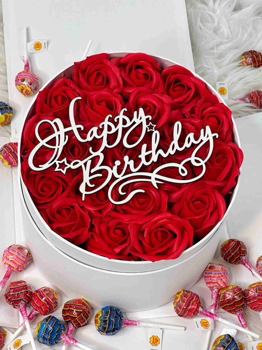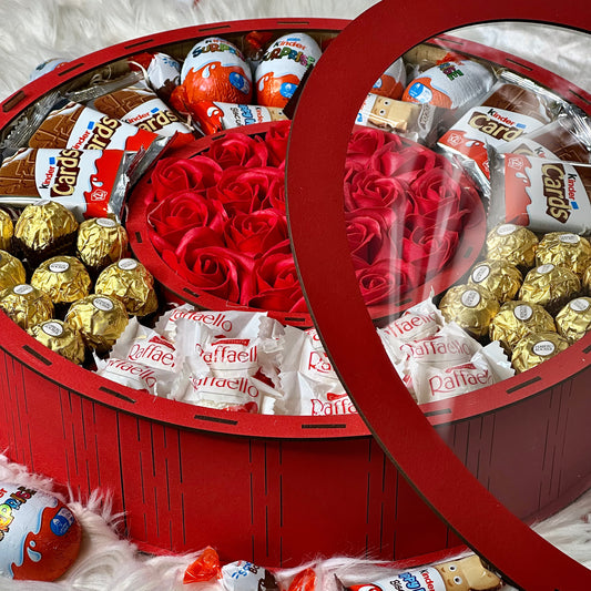 Large Red Wooden Gift Box with Soap Roses & Sweets 40*40 cm