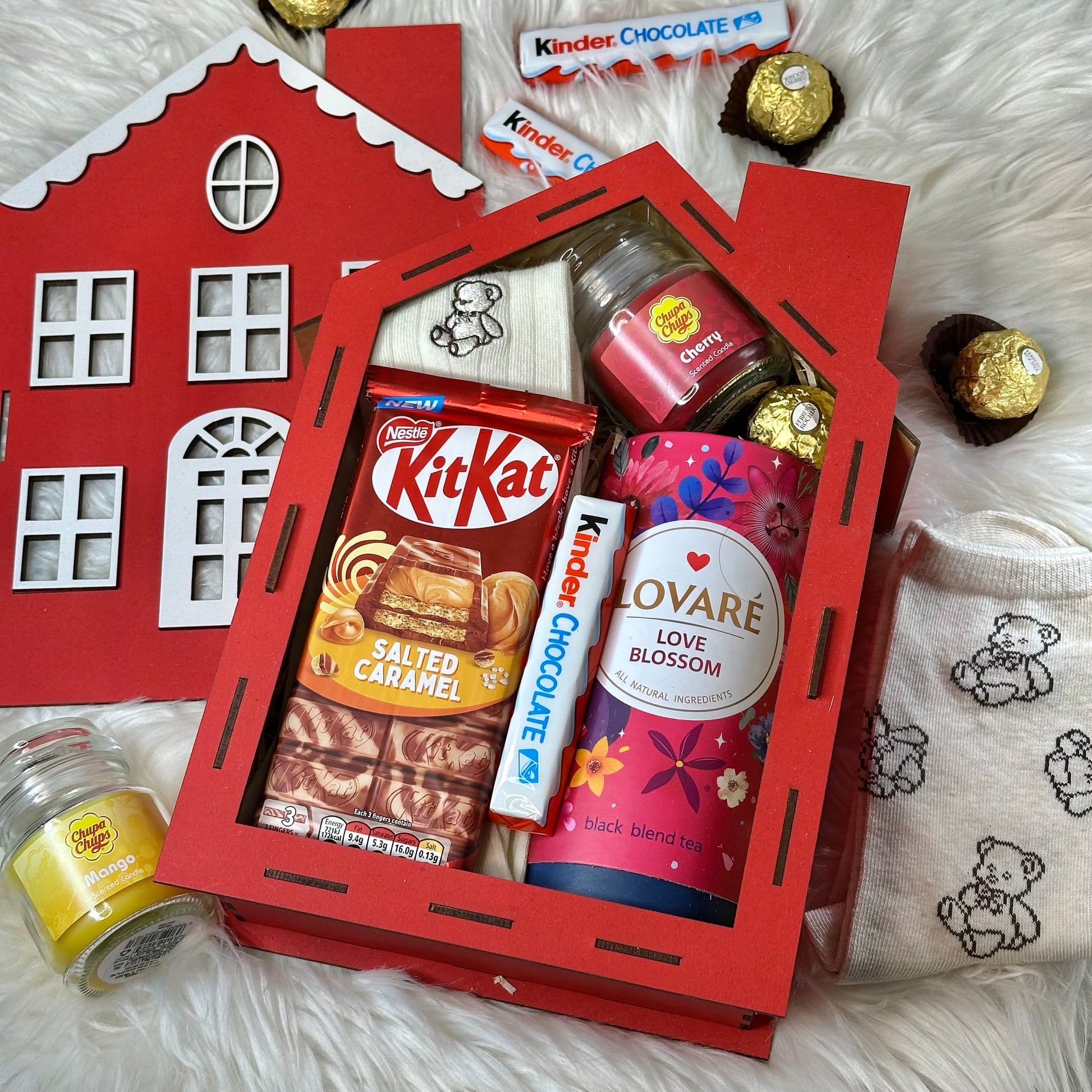 Delight someone special with this handmade cozy gift box, beautifully packed in a stylish red wooden box. Filled with comforting treats and thoughtful items, it’s perfect for birthdays, Christmas, Valentine’s Day, or simply to show you care. A warm and relaxing gift for tea lovers and chocolate fans alike.