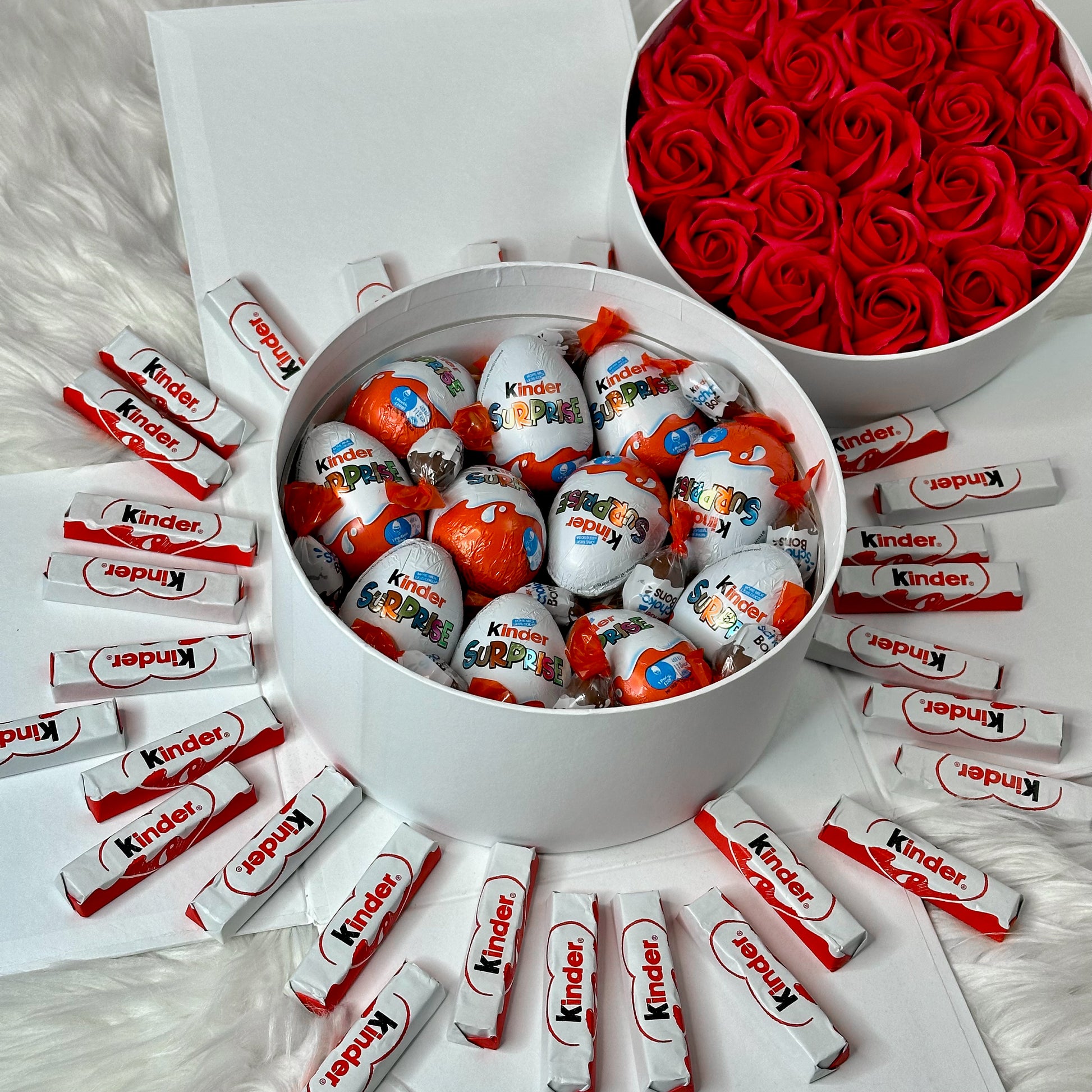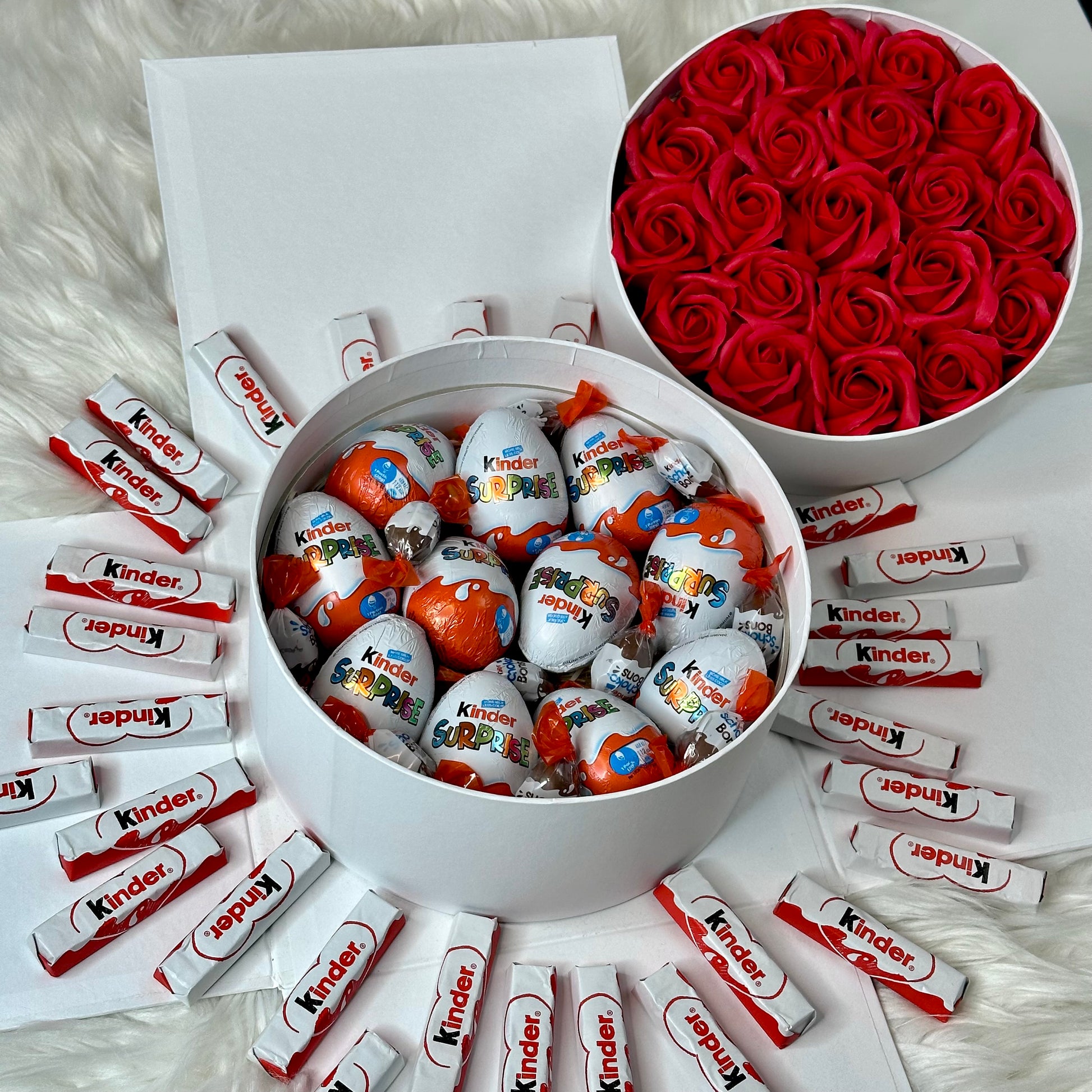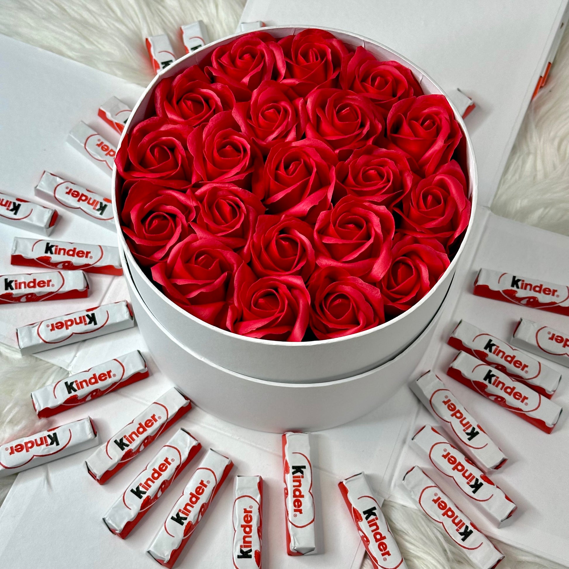 This elegant two-tier gift box, filled with delightful sweets and luxurious soap roses, is designed to impress. The charming soap flowers, made from foam, add a touch of sophistication and elegance to any occasion. These beautiful roses dissolve in water, releasing a captivating fragrance, but their true charm is best enjoyed as part of your home decor.