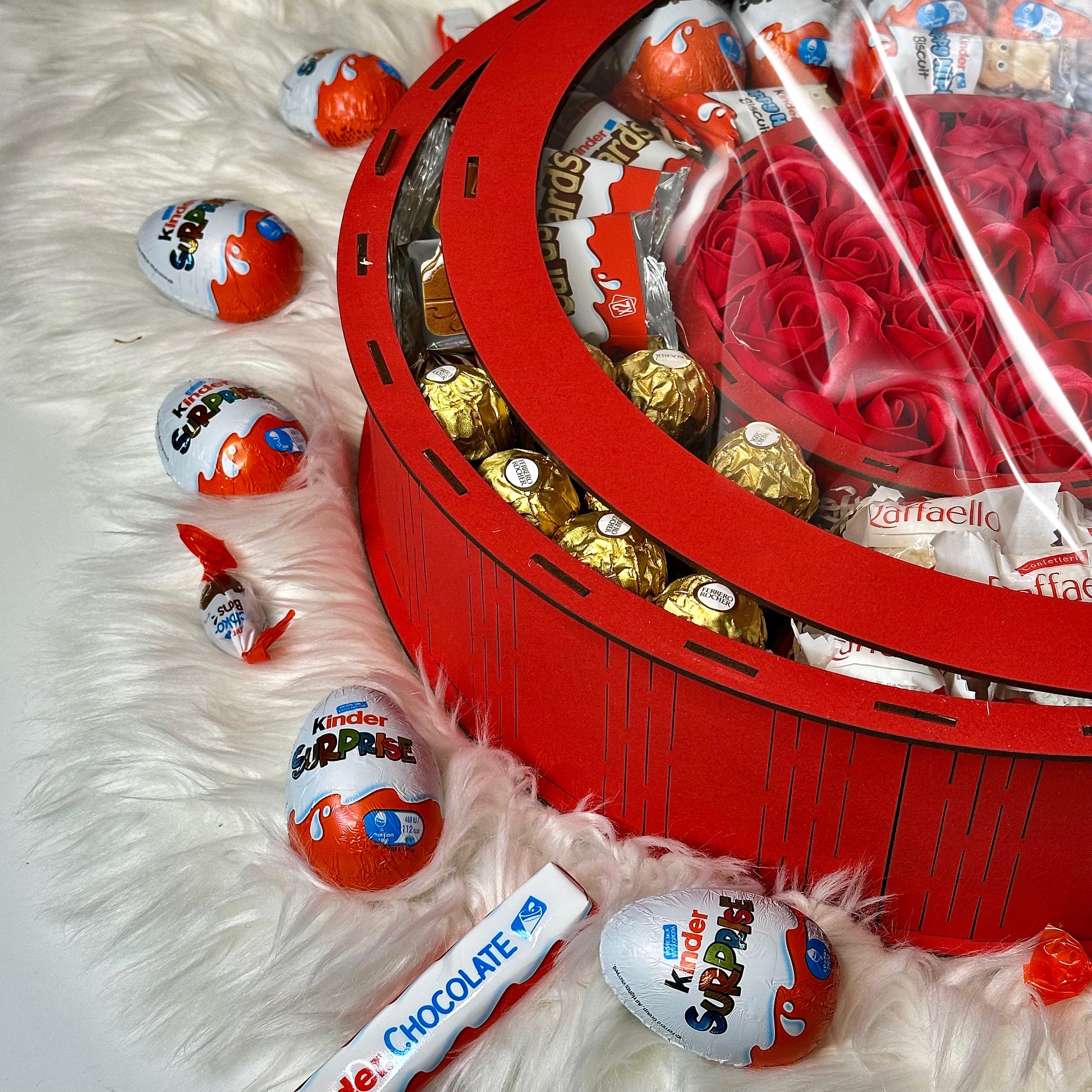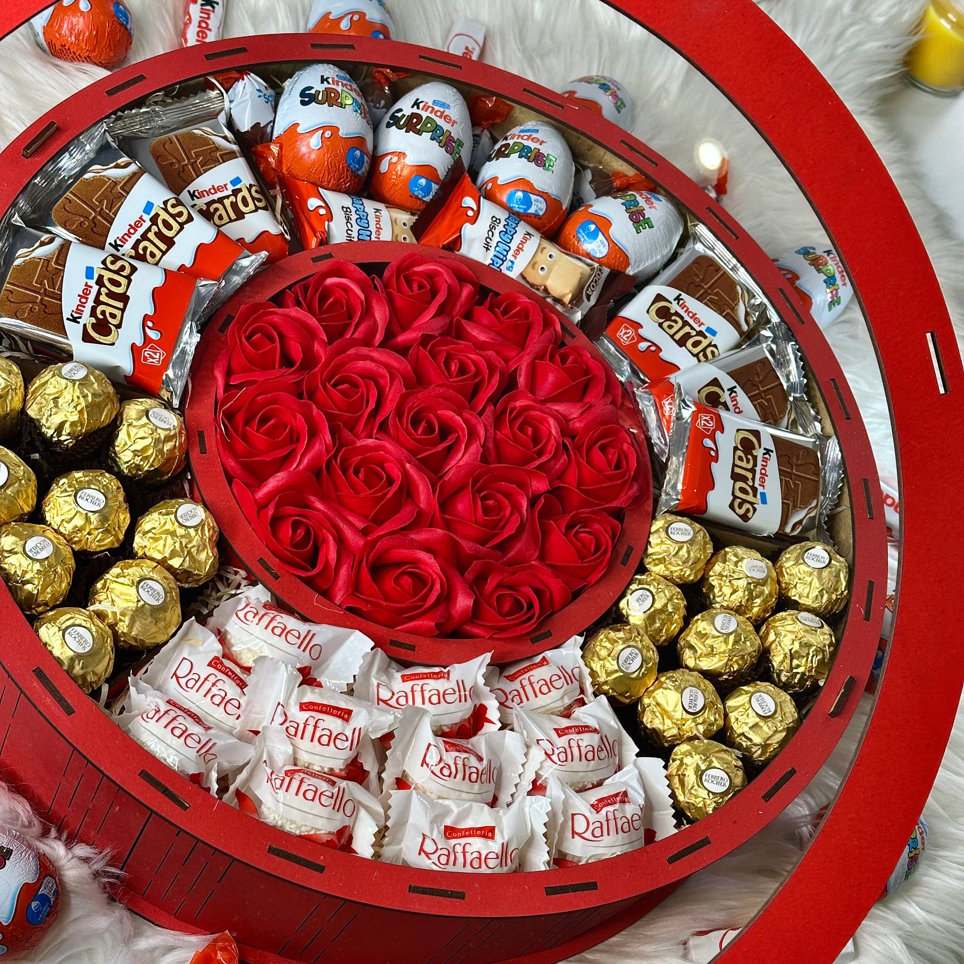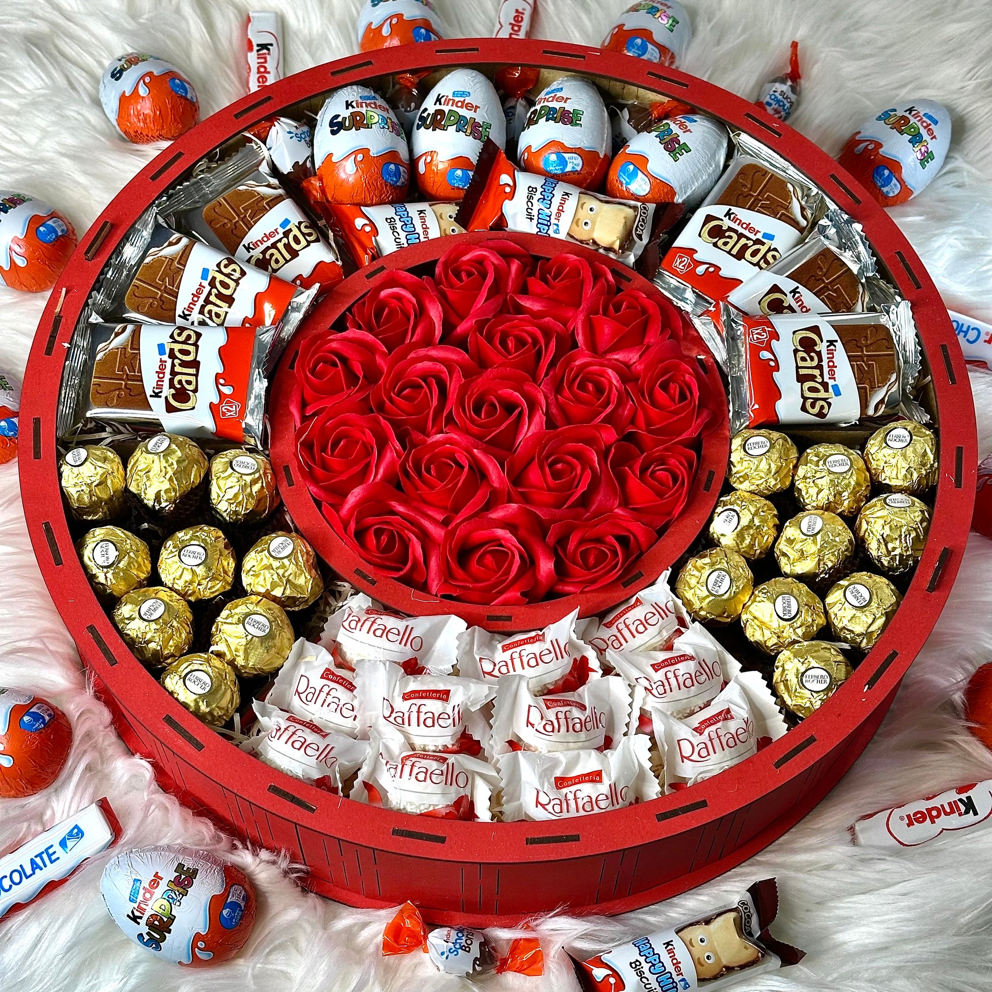 Make any celebration unforgettable with this luxurious handmade large red wooden gift box, designed for those who appreciate sweet indulgence and elegant presentation. Filled with a mix of fragrant soap roses and a generous selection of popular chocolates, it’s the perfect gift for birthdays, anniversaries, Valentine’s Day, or any heartfelt occasion.