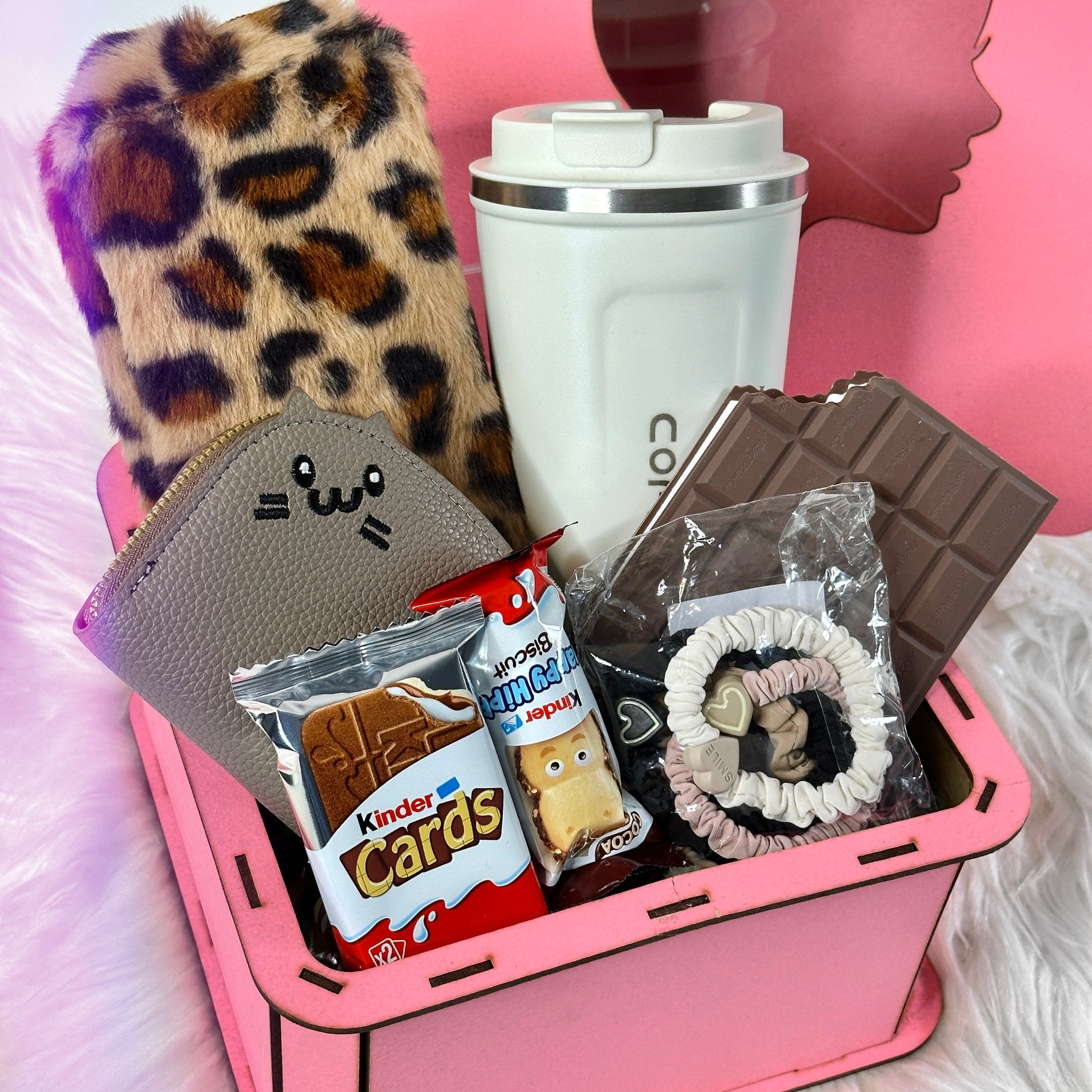 This stylish pink gift box, measuring 20×20×10 cm, is filled with thoughtfully selected and charming items: