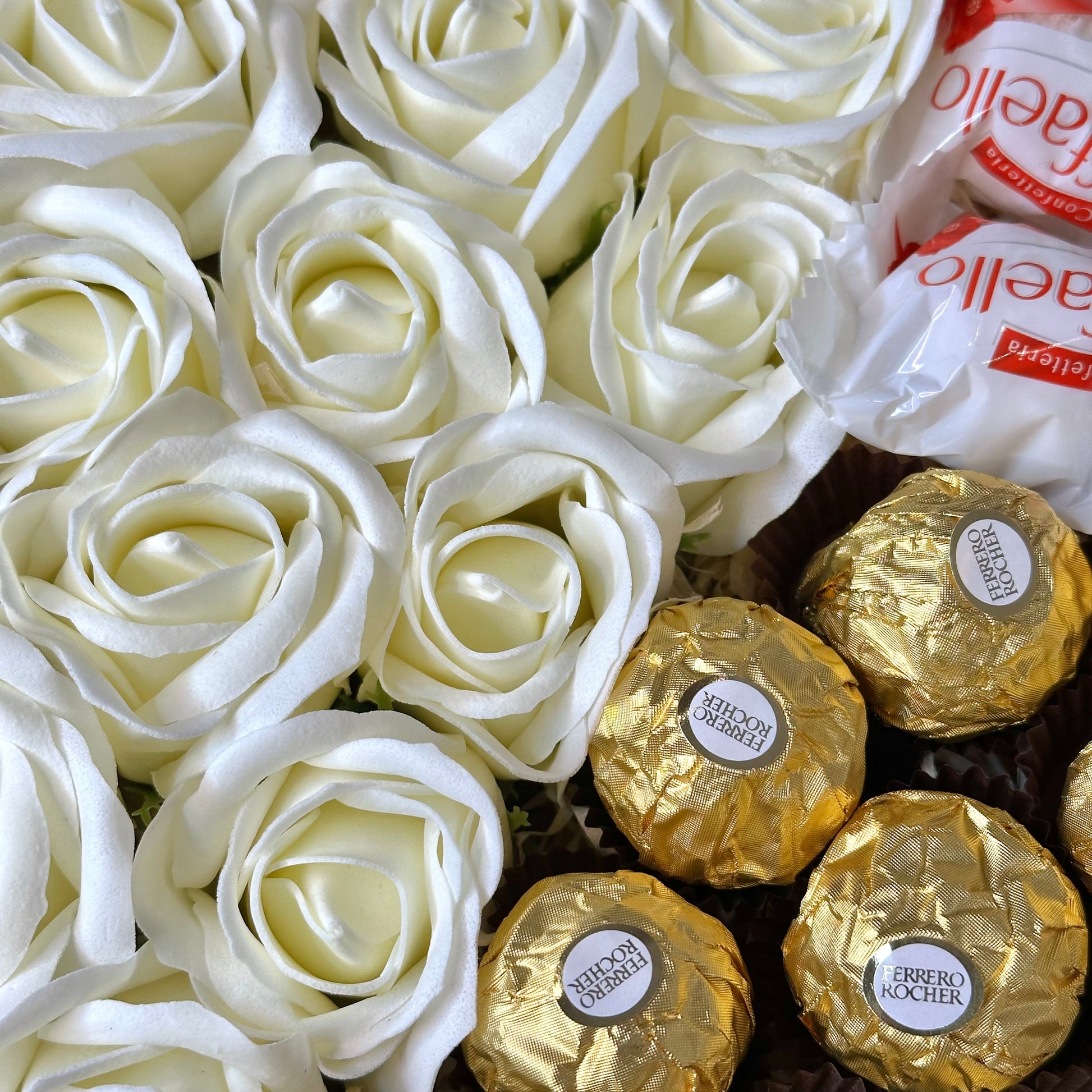 Beautifully arranged and ready to gift, this 30x30x10 cm box brings together the charm of everlasting roses and the indulgence of delicious sweets. A luxurious surprise for someone you truly care about.